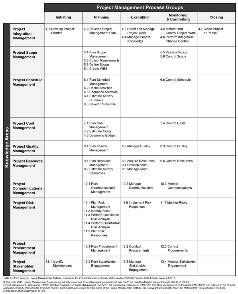 4) What are included in the five PMBOK process group include?