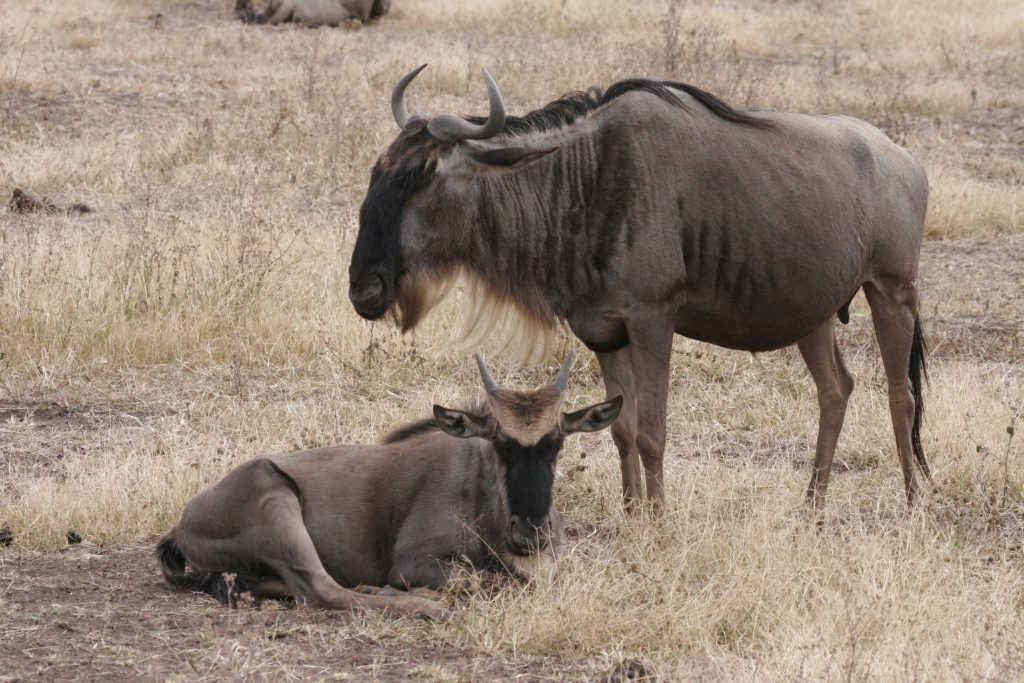 - In both species the male is larger than the female. Generally, the blue wildebeest is larger compared to the black wildebeest.